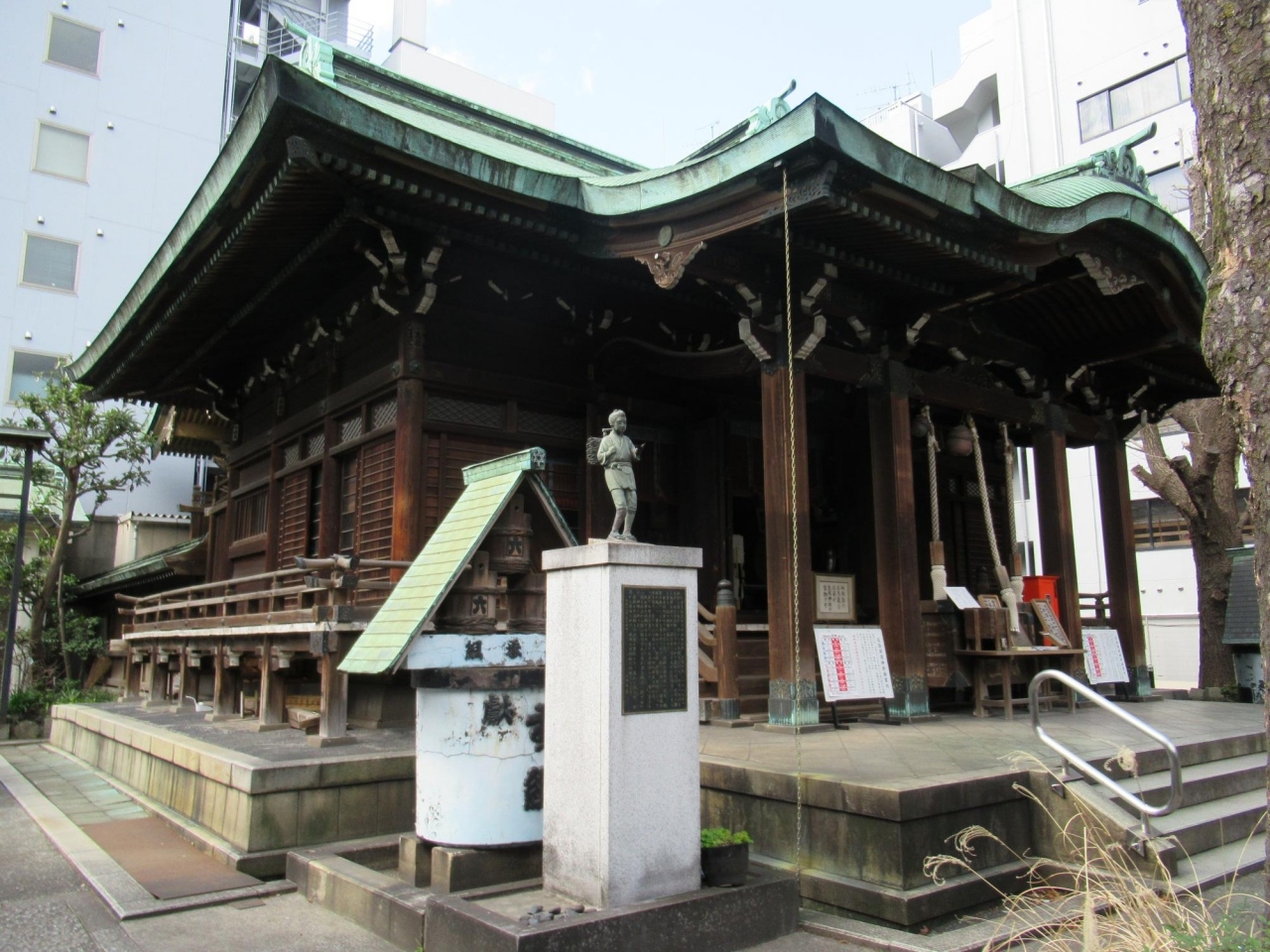 中央区明石町界隈を散策の折、足を延ばして訪ねたのがここ 鉄砲洲稲荷神社 で、鉄砲洲通りの湊一丁目交差点左手前 (南西方向) の通り沿いに鳥居があります。