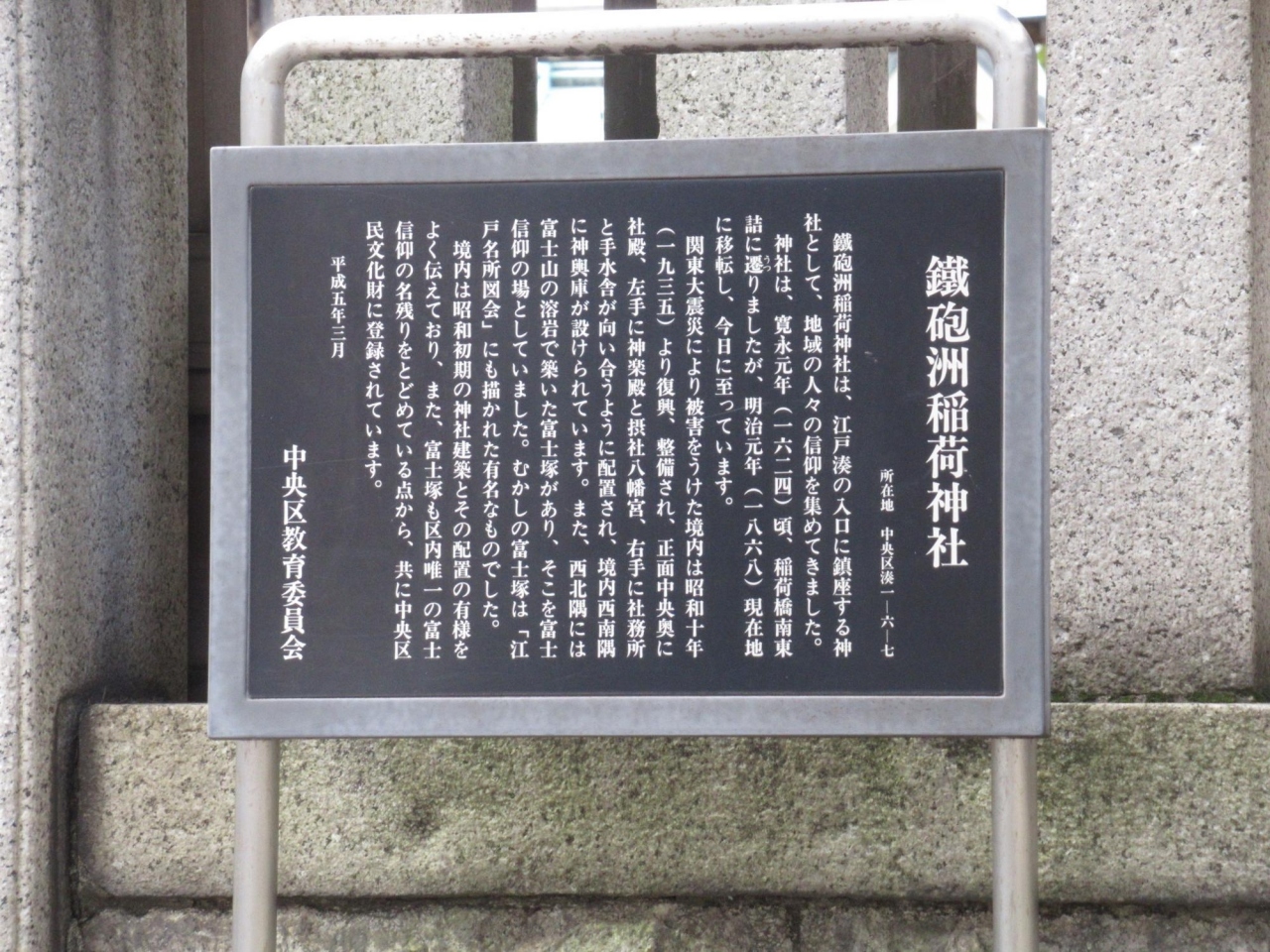 ここ 鉄砲洲稲荷神社 の境内はそれ程広くないが、昭和初期の神社建築やその配置とともに区内唯一の立派な富士塚なども見れるので訪ねることをお勧めしたいところです。
