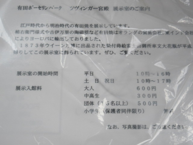 有田のポーセリンパークへ行きました。ここには大きな素敵なお城があるのですが、そのお城の中にある美術館ですので、こちらに入場すればお城の中も楽しめます。展示品は陶器がたくさんあって、有田焼の作品をたくさん見られます。大きな花瓶(180センチ以上あるそうで)などは迫力もあってすごいです。