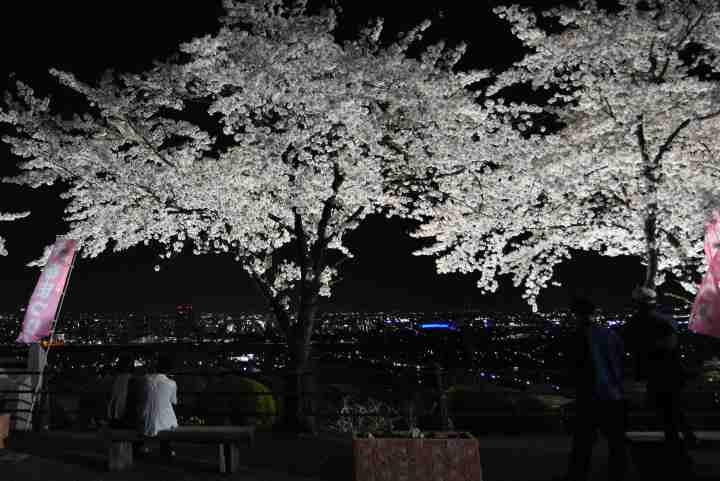 できれば駐車場まで行って、ライトアップされた桜の花越しに高崎の市内の夜景を見るというのがオススメです。