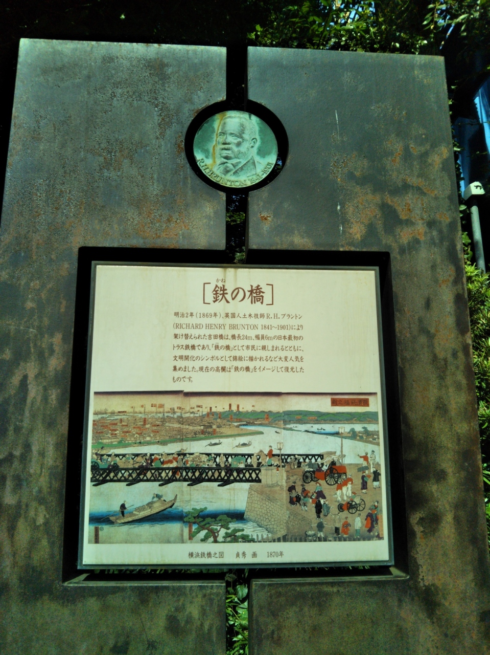横浜を散策していると『鉄の橋碑/ブラントンと横浜碑』がありました。