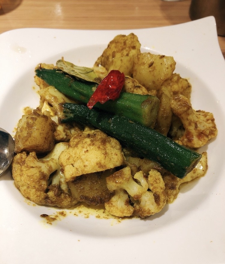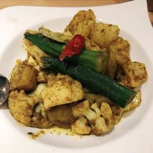 マサラカシューは味つきのカシューナッツですが、玉葱のかき揚げが乗っています。カリフラワーブジアはお奨めです。食欲がそそる味付けでカリフラワーのしゃりっとする食感もいいです。