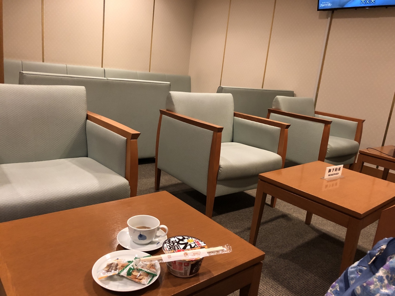 軽めのランチでもと考えていたのですが、お食事はカップ麺と乾き物のお菓子がメインでした。