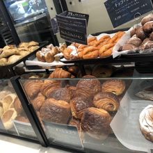 店の端からからレジまでの縦長のショーケースにパンが並んでおり、店員さんに欲しいパンを伝えてパンを取ってもらうシステムです。
