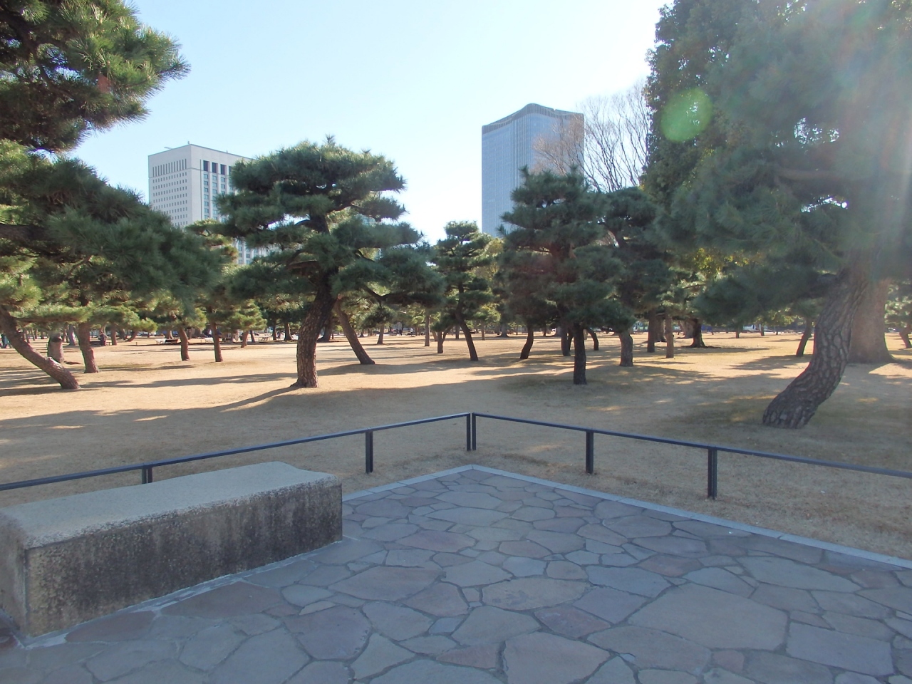 厳密にはここの皇居前広場と北の丸公園と堀付近の緑地を合わせたものを言うそうですが、ここでは皇居前広場の公園に限ります。普通の公園とは違い遊具等は一切ありません。広い芝生、黒松の植え込み、噴水公園、楠木正成像等が配置されています。鉄柵のあるところと、い所があります。何か意味があるのでしょうか。今、芝生は茶色ですが、緑が濃くなった時、クロマツとのコントラストは見事だと思います