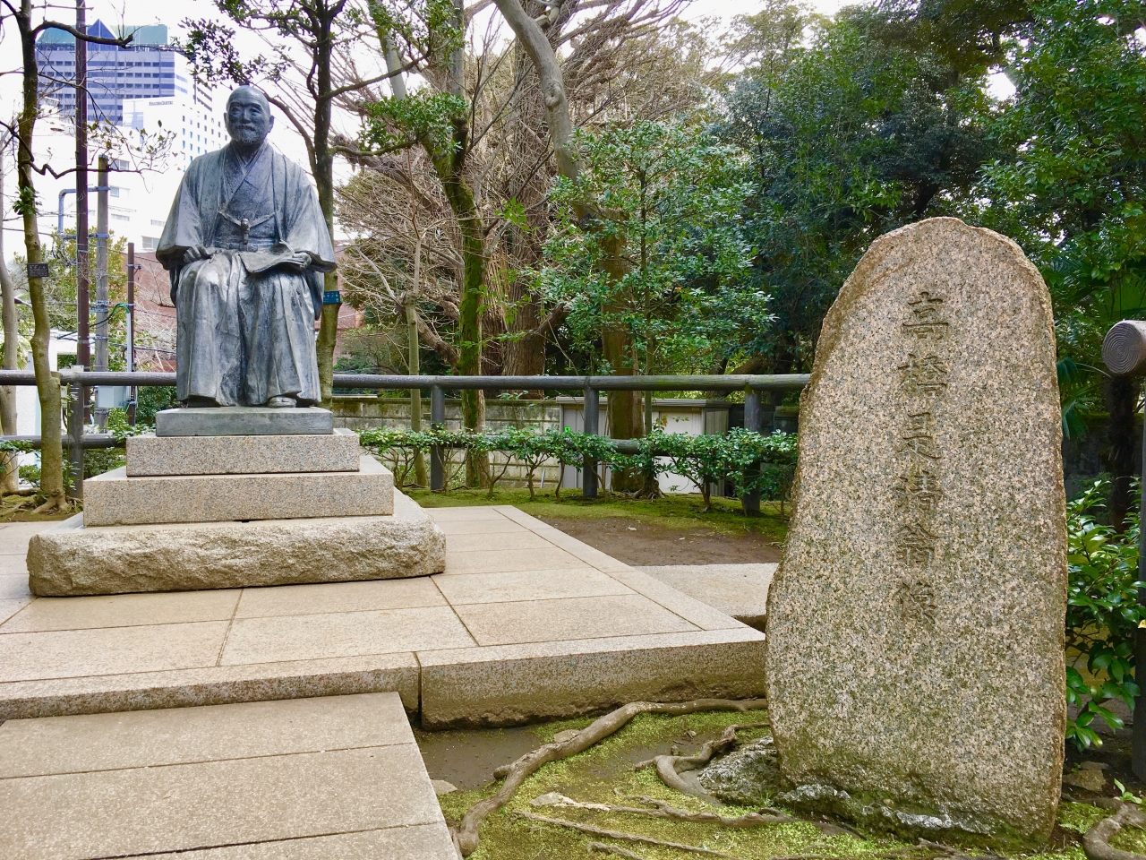 是清様が青山通りの赤坂御所の向かいにある高橋是清翁記念公園の奥に座っていました。青山通り側の入り口左手は工事中です。管理棟を造っていて6月末頃出来上がるようです。是清様が穏やかに見守っているように思いました。
