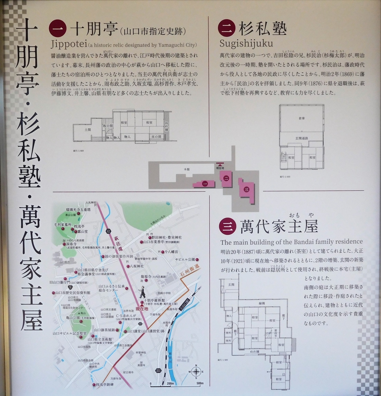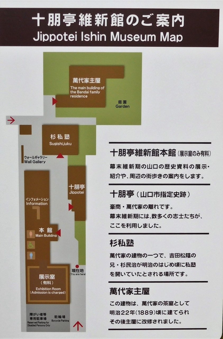 十朋亭維新館の本館には萬代家の歴史資料が展示されています。萬代家主家、十朋亭、杉私塾があります。