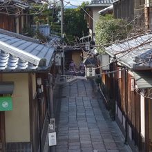 高台寺へ抜ける狭い路地です。2本あります。料亭あり、個人住宅ありとバラエティに富んでいます。きわめて雰囲気のよいところです。