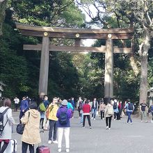 明治神宮を原宿駅から来た時に見える鳥居です。見るとわかりますが、木製で木目が見えるという非常に特徴的な鳥居です。そもそも木製の鳥居は赤く塗られるのが普通なのにここはそういうことはしていない!明治神宮は特別だからこうしているのだという強い意志を感じました。