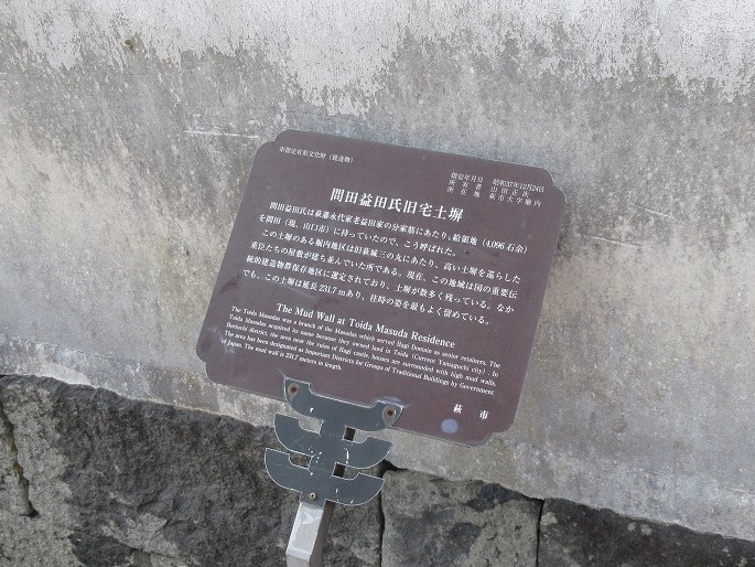 萩の城下町散策の際に、【天樹院墓所】から程近い場所に、延々と続く長い土塀を見つけました。それが問田益田氏住宅の土塀で、200mを優に超えるその長さは、萩の武家屋敷群の中でも有数の長さと思われました。中の様子はうかがい知ることが出来ないですが、江戸時代には相当立派なお屋敷が建っていたのだろうと想像を巡らせながら、土塀沿いを散策しました。