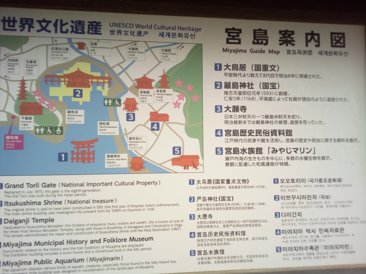 広島に来たら、是非、訪れるべき場所と思います。宮島に行くに広島駅近辺より路面電車で約40分に加えフェリーで10分かかりますが、観光ポイントとしてはずせない場所と思います。厳島神社ももちろんですが、宮島には他にも散策できる場所が多いです。