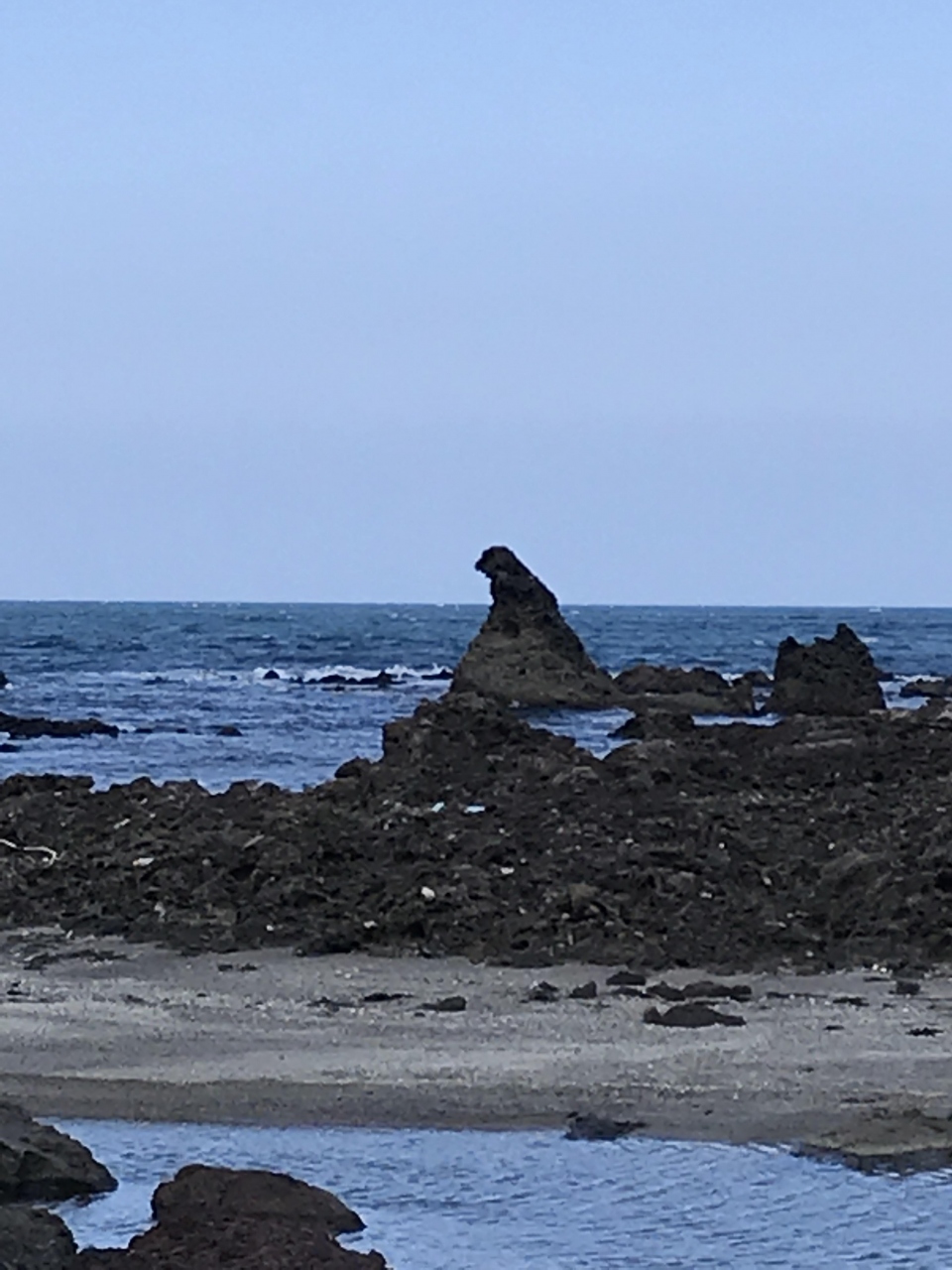 ゴジラ岩を目指して国道を進みましたが予定地点を発見できず、道の駅で確認すると通り過ぎてしまったことがわかりました。スタッフの方は「小さくて戻ってみるほどではないかもしれませんよ」とまで言われてしまいましたが、意地になって見に行きました。確かに小さくて笑ってしまいました。