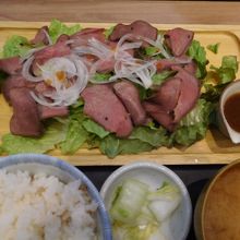 呉駅近くのショッピングセンター「ゆめタウン呉」の3階にあるレストランです。お昼時でどこのお店も混んでいましたが、お手頃な値段の和定食がいろいろとありそうだったので、ここに入りました。ローストビーフサラダ定食を注文しましたが、美味しかったです。店内の厨房では、炭火で牛タンや干物を焼いている様子が見えました。