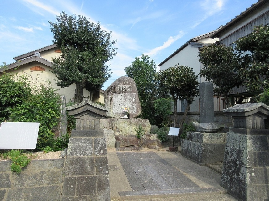 萩の堀内地区から平安古に向かって歩いていく途中、道沿いにポッコリとくぼんだ一角があり、【久坂玄端生産地】として石碑などが設置され整備されていました。松下村塾に学んだ吉田松陰の門下生の一人で、幕末維新の時代を駆け抜けた志士の一人です。櫓を模したような門柱も建っていて、萩市民の彼への敬慕の念を感じることが出来ました。