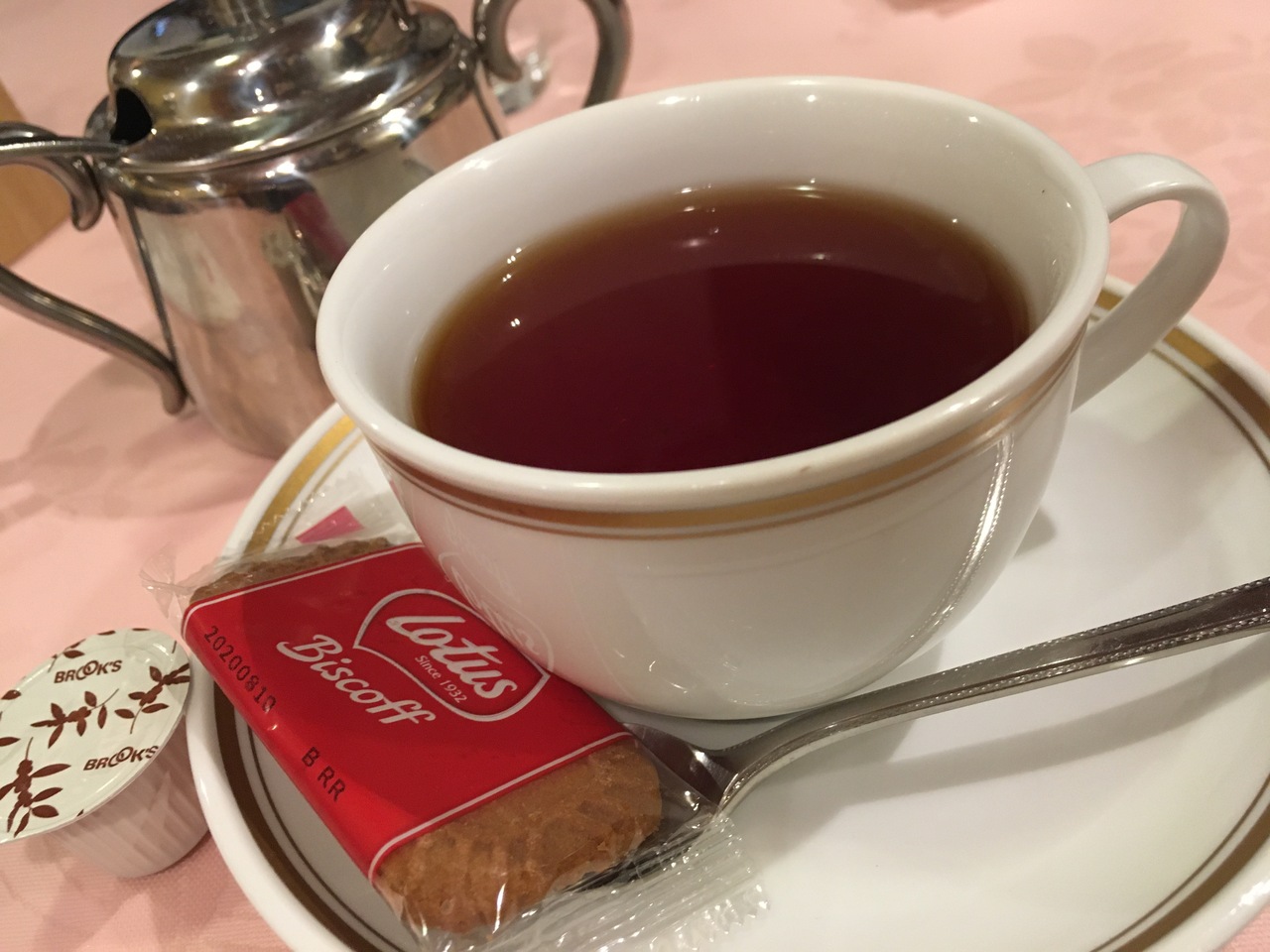 それでも揚げ物が続くと食後には飲み物が欲しくなるので、追加で紅茶を注文。ビスケットが添えられた紅茶で口直しをして、老舗で昼食を食べた安心感と共に店を出た。