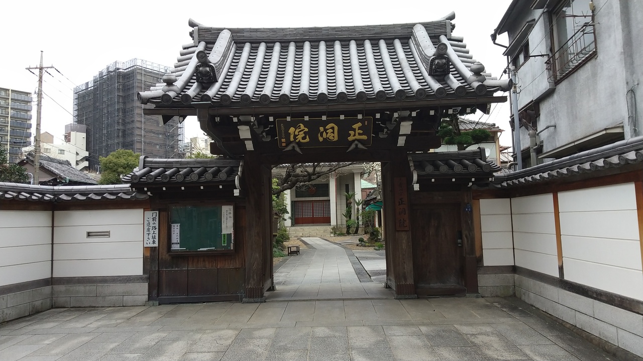 東京メトロ入谷駅の周辺にはたくさんのお寺や神社があると聞いて,お寺巡りに行ってきました。正洞院は,住宅街の中にある曹洞宗のお寺で,黒い屋根瓦の山門が立派で印象的です。本堂はコンクリート造りの新しい感じすが趣があります。