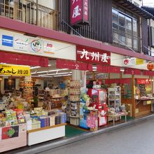 宮島の厳島神社へと向かう、表参道商店街入り口の近くにある、お土産屋さんです。「九州屋」という店名から、宮島で九州のお土産?と思いましたが、店内には、宮島のお土産品がいろいろと並んでいました。お店の右側で、食べ歩き出来る「にぎり天」の販売もあり、気になりました。