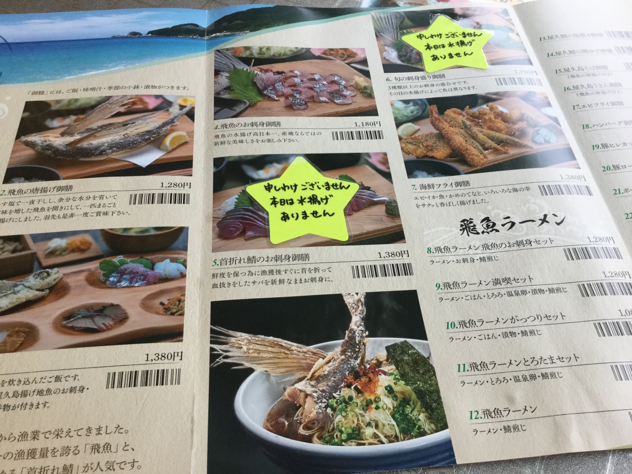 2回目のお昼は、前回飛魚のフライなので、姿焼きかラーメン、