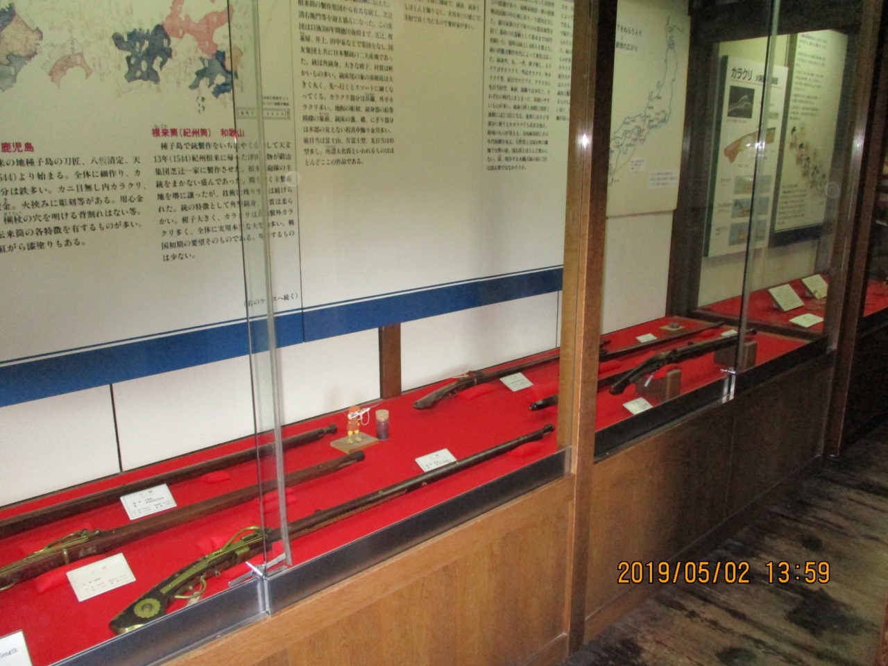 松本城大天守の2階には、火縄銃を主とした数々の鉄砲が展示されています。当時、作られた鉄砲の実物を見たり、鉄砲の構造について記した解説を読んだりすることもできます。また、小田と武田が戦った長篠の合戦屏風図(複製)なども展示され、興味深く見学することができました。