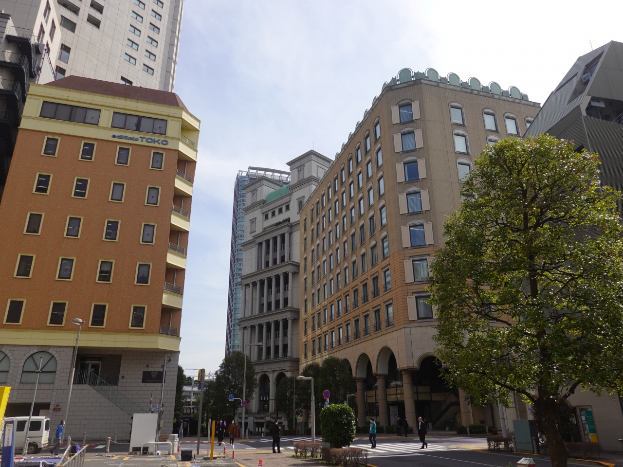 新橋の塩釜公園から東に向かい、第一京浜を超えると正面に日本っぽくない建物が現れます。「汐留シオサイト5区イタリア街」で、特に美しいアーチを描いたファサードなどは欧風色が強いです。「イタリア街」の存在自体はやや中途半端な規模だと思いますが、個別の建物に関してはなかなか興味深いです。