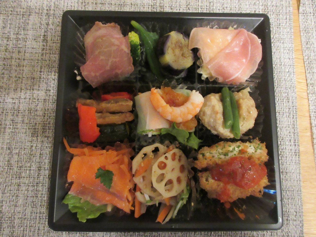 休日の昼食にグランスタで弁当をいくつか買って家族で食べ比べをしました。その際みんなでつまめるように9品が入ったセットを買いました。野菜の煮物、魚のフライ、コーンサラダ、マリネなど彩りよい料理が少しずつ入っていました。弁当だけでは食卓が寂しかったので買っておいてよかったです。次回は一人で全部食べてみたいと思います。