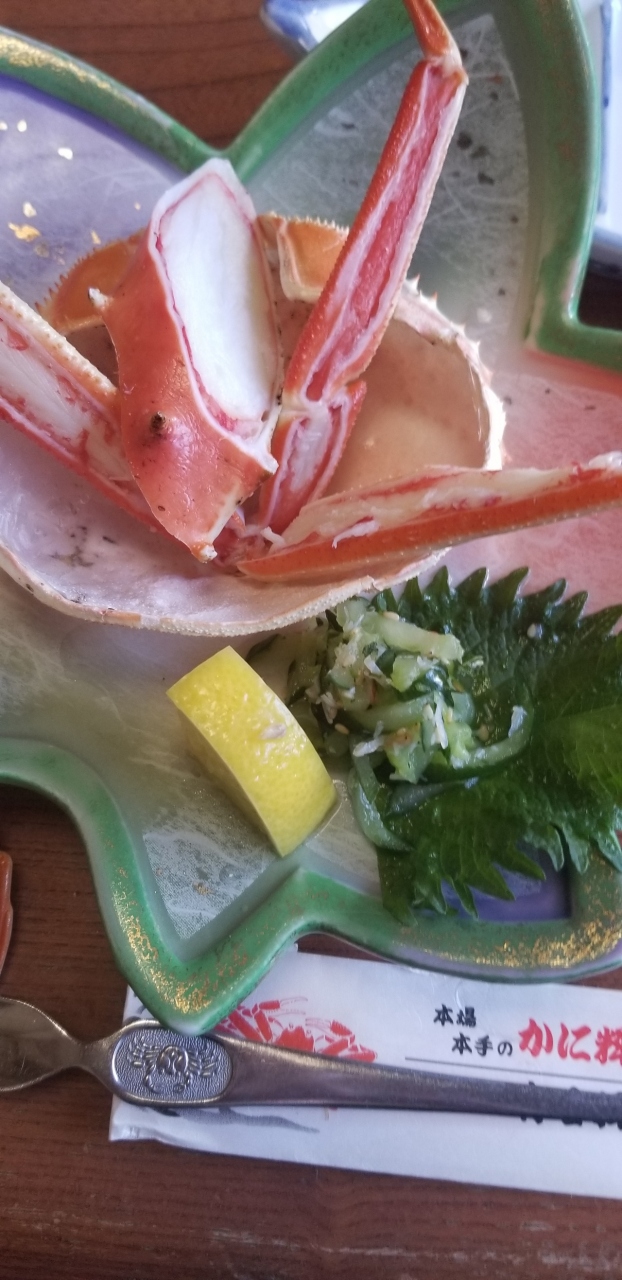 前菜、カニ グラタン、カニの甲羅揚げ お魚の西京焼き