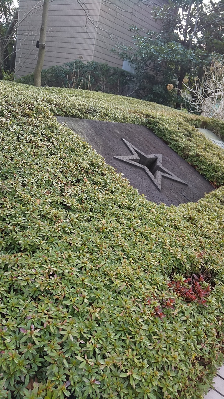 聖路加病院にお見舞いに行った後に広場があってそちらでこちらのモニュメントを見た 広場があるのでそちらでコーヒーを飲もうと思ってテーブルを探していたところ植え込みの中にこちらのモニュメントがありました。昔は築地が外国人の居留地があってこちらにもその公邸があったそうで。星のマークがとても迫力があったので幕末の歴史などに興味のある方は一度見ると良いと思います