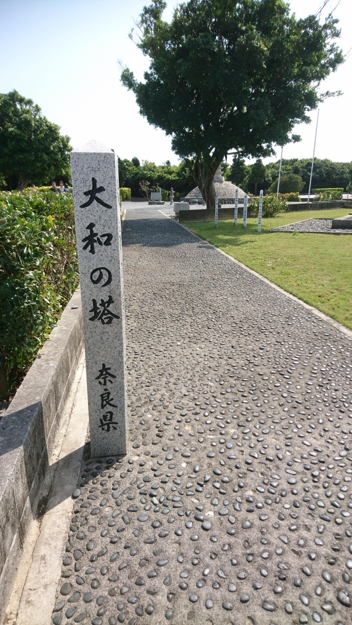 大和の国、和歌山県出身の沖縄戦戦没者を祀った記念塔です。糸満市の米須霊域にあります。ここには、ほかの県の慰霊塔があり、みなさん慰霊に来ています。みんな、自分の県だけでなく、すべての県の慰霊碑を回っていました。出身地は違っても、戦没者を思う気持ち、平和を願う気持ちは変わらないのだと思いました。