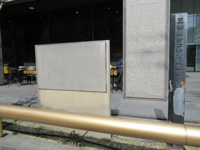 今日は三条界隈を散歩し三条通を烏丸へそこに北西にスタバがありますが、店舗前の道路沿いに「三条通界わい景観整備地区」の表示と「三条西殿 三条大路跡」の説明パネルがあります。説明パネルの文字が読みにくいのは残念です。