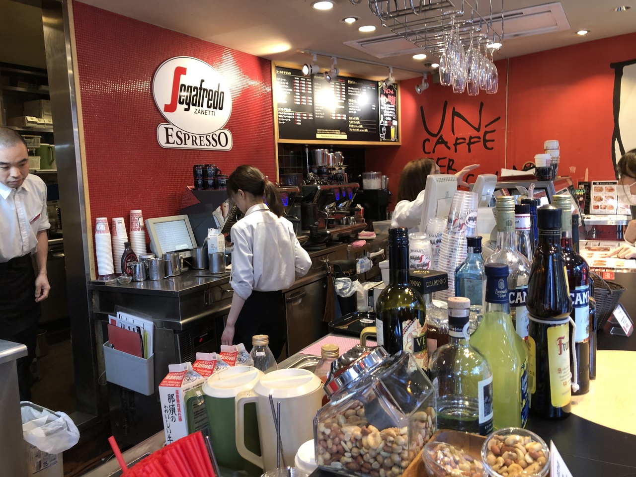 イタリアのカフェがテーマのカフェ。南口からすぐなので混雑していないときはない。1階、2階に禁煙席、3階に喫煙席だが、2階もかなり煙くて分煙あまりできてない。注文は一回のキャッシャーで注文するとイタリア語で注文を厨房に繰り返すのが聞ける