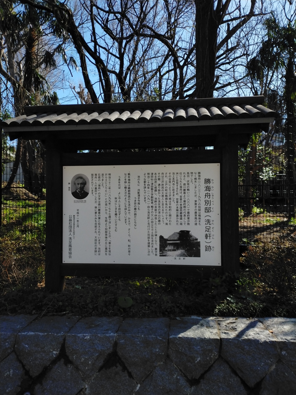 勝海舟が晩年を過ごした別邸洗足軒は区立大森第六中学の敷地内にあった