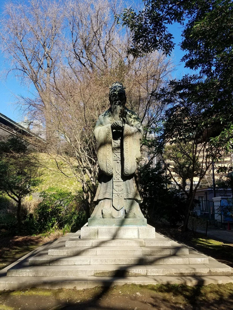 仰高門から入って直進すると説明の石碑に突き当たるのでそこで右を向けば少し先に見えます。1975年と割と最近に台北から寄贈されたものですが孔子の銅像としては世界最大級のものだそうで、その点は貴重ですね。大きい分、写実的で細部までよく表現されているようでした。