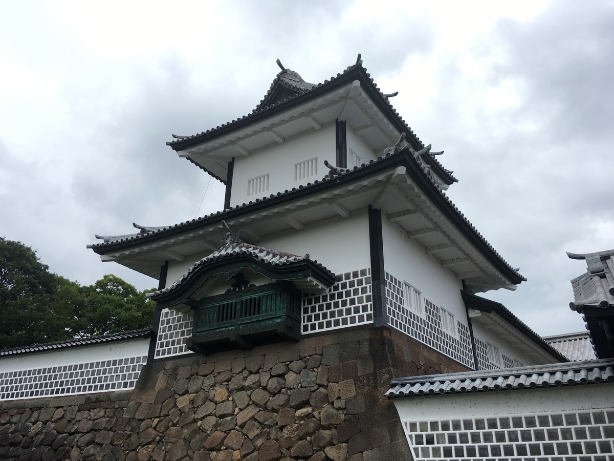 金沢がある石川県の由来となった石川郡の名前を冠する門で、城の裏口に当たる搦手の門ではありますが、兼六園側から橋を通ってアクセスできるメインルートであることから、場内でも非常に有名な門となっています。他の城内の建築同様、海鼠壁が特徴です。以前の訪問時は、修繕工事中で囲いがされていましたが、今回はそれも完了し、枡形構造をじっくりと観察することが出来ました。