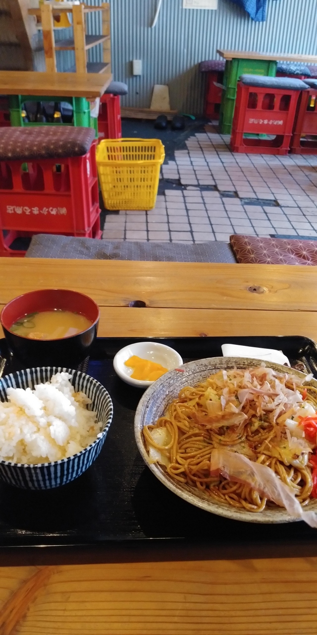 本業は夜の居酒屋,それも地元広島東洋カープの試合がある日には大盛り上がりを見せる安旨居酒屋。昼もリーズナブルなランチを数種類だしており,この日はワンコインの焼きそば定食を。店員は若くて元気がよく,一品料理も手ごろで,長居したくなる店でした。