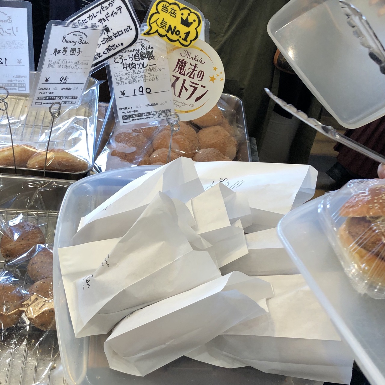 一番人気はカレーパン。メディアで取り上げられたこともあり、次々に売れていきます。目の前でなくなってしまったお客さんが、店員さんに声を掛ける姿が見られました。どんどん追加されていくので、少し待てば買えるようです。
