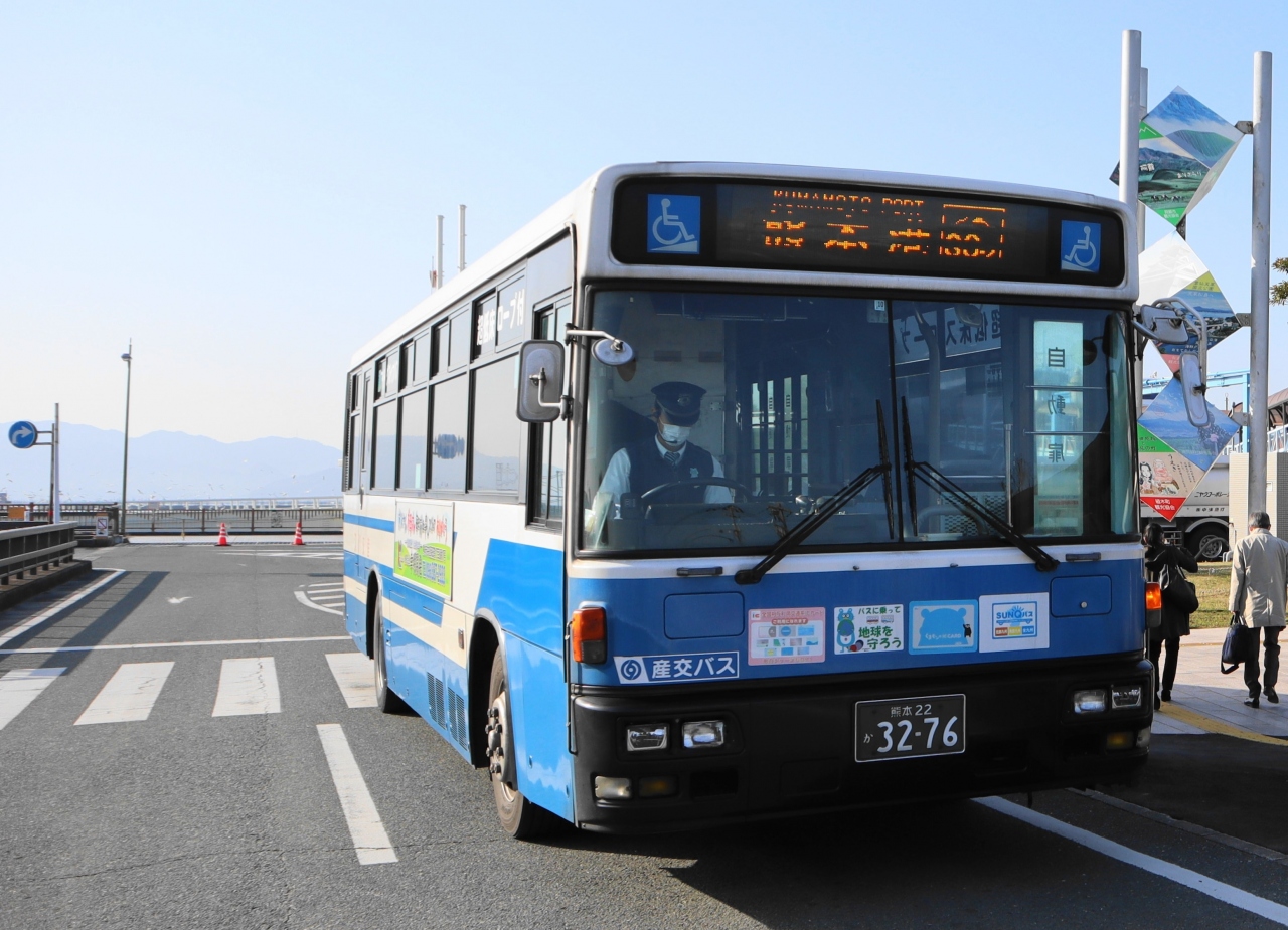 約30分程で熊本港に到着、船の出航に合わせてバスが出ているのがいいですね。