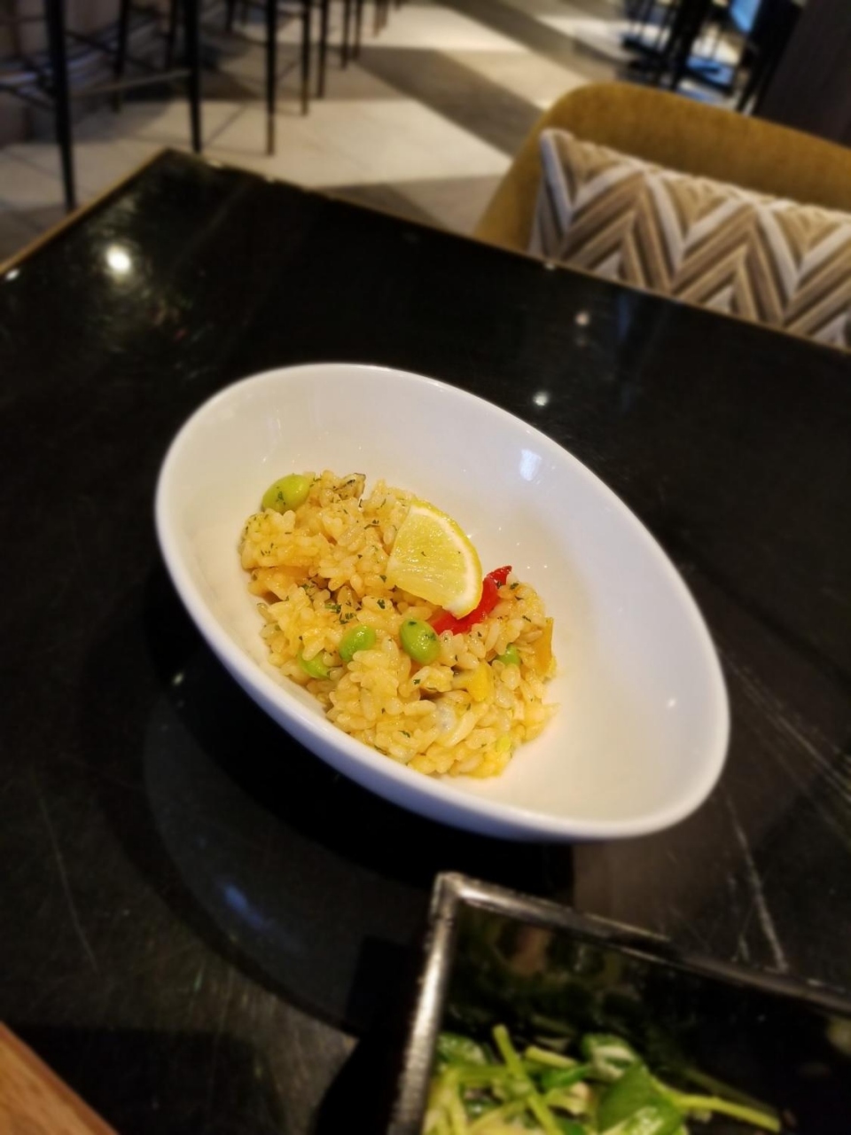 そして別に温かいお料理としてミニバーガーやパエリアも出るので