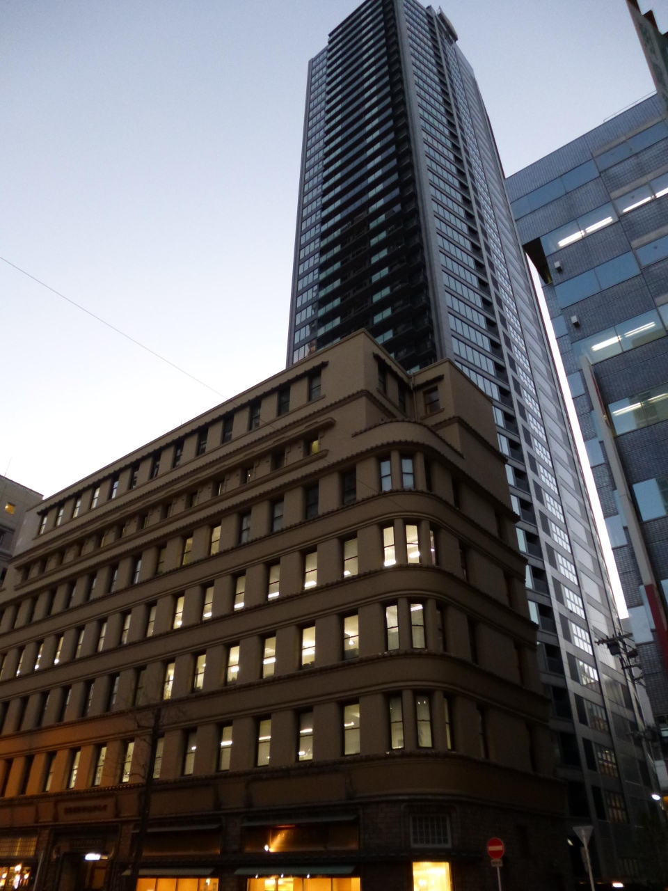 竣工が1927年なので、100年近い歴史を持つビルです。堺筋の向かい側から眺めるとその大きさがよくわかります。背後にはマンションと思われるスラリと高いビルが建ち、そのコントラストも面白いです。レンガを用いた1階部分に特に惹かれました。