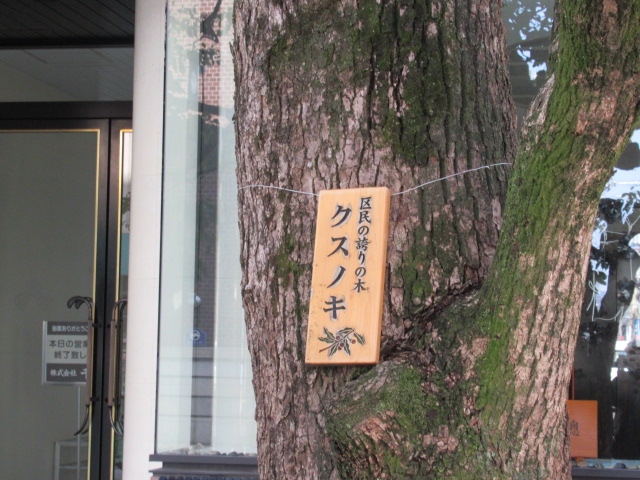 また後ろには、区民の誇りの木としてデカイ、クスノキが立っています。