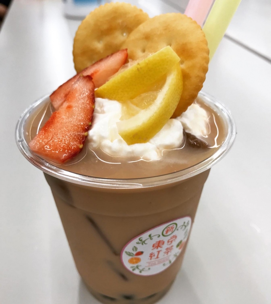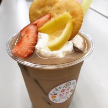 催事にて出店されていたので、流行りのチーズティーにチャレンジしてみました。全く想像がつかなかったのですが、チーズ風味の生クリームが載っているという感じでしょうか。ミルクティーにさらにコクが出た感じがありました。オシャレに盛り付けられているので気分上がります。