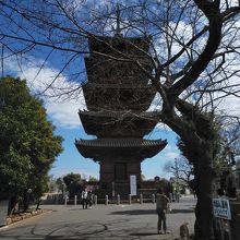 池上本門寺の総門をくぐって階段を上り仁王門をくぐった先の左手の墓域の一角に立派な五重塔があります。