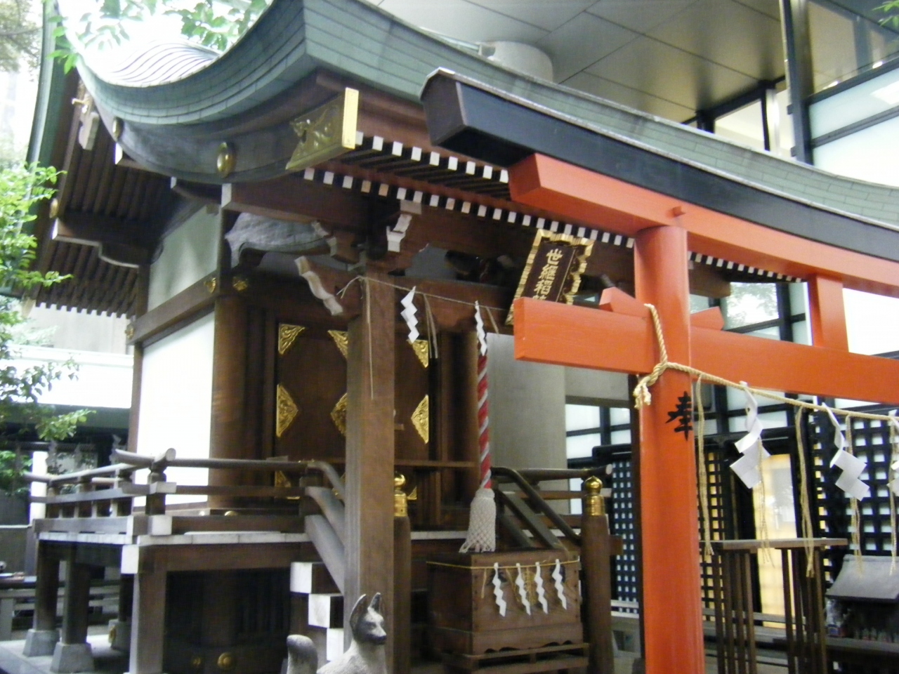 九段下駅を降りてすぐ、九段坂よりも1本北側にある中坂という坂道の真ん中付近に築土神社があり、その境内にある神社になります。創建は1441年と今から600年ほど昔で、創建当初は田安稲荷とも呼ばれていたそうですが、徳川秀忠の時代に境内に橙の木があったことから、「橙」が「代々」となり、その意味から「代々世を継いでいく」ということで、今の名前になったようです。今では築土神社の境内社のような存在ですが、元々は世継稲荷神社の方が先にこの地にあったとのことです。なかなか面白い歴史で訪問できて良かったです。