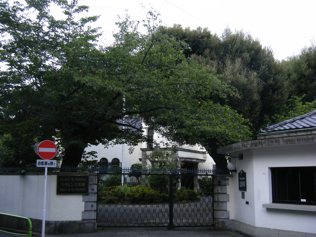 駐日フィリピン大使館公邸は靖国神社の北東の高台に位置しています。フィリピン共和国大使館は六本木にあるのでご注意ください。ここはあくまで大使館員の公邸になります。それにしても六本木の大使館からそれなりに距離があるように感じるのですが(実際に5キロ近く離れているようですが)、どうしてこんな遠くに大使館員の公邸があるのでしょうね。面白いことに、オノヨーコが幼少期に住んでいたという歴史もあるそうです。