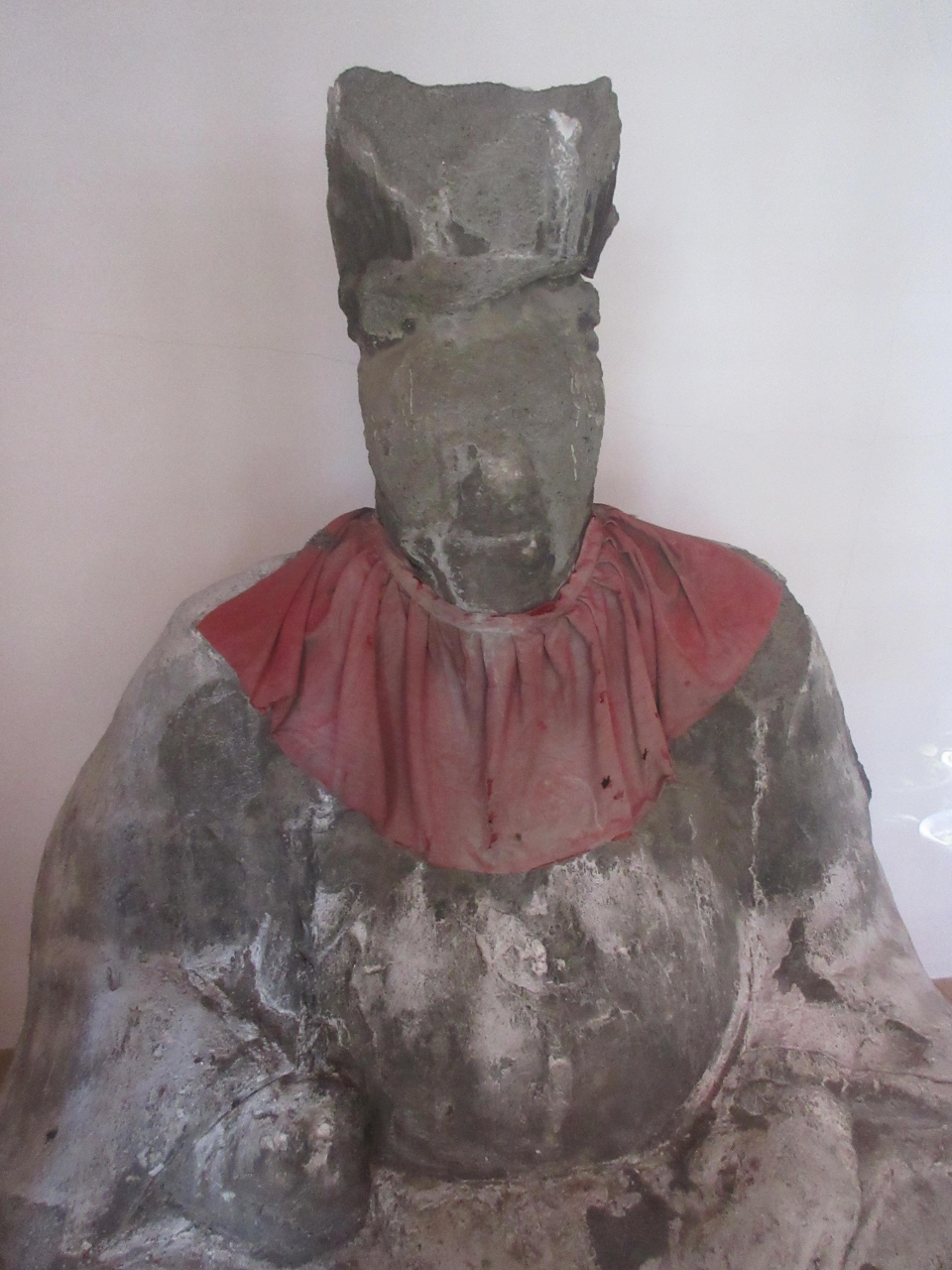 神谷町駅3出口から5分ほど歩いたところにある浄土宗寺院興昭院の本堂前にあります。説明柱があり、そこに閻魔王像の様子が記されています。読んで像をよく見るとそれらしさがわかりますが、読まなければ風化した像の顔はよくわからなかったです。新しい祠の中に保存されています。眼病を患う人から篤く信仰されていて、祈願成就するとこんにゃくを供えたと伝えられています。今ではその風習はなくなったそうです。小石川の源覚寺のこんにゃく閻魔は眼病治癒や身代わり閻魔として今でもこんにゃくが供えられていました。こんにゃく閻魔に関心のある方は両方の寺を訪れてはいかがでしょうか。