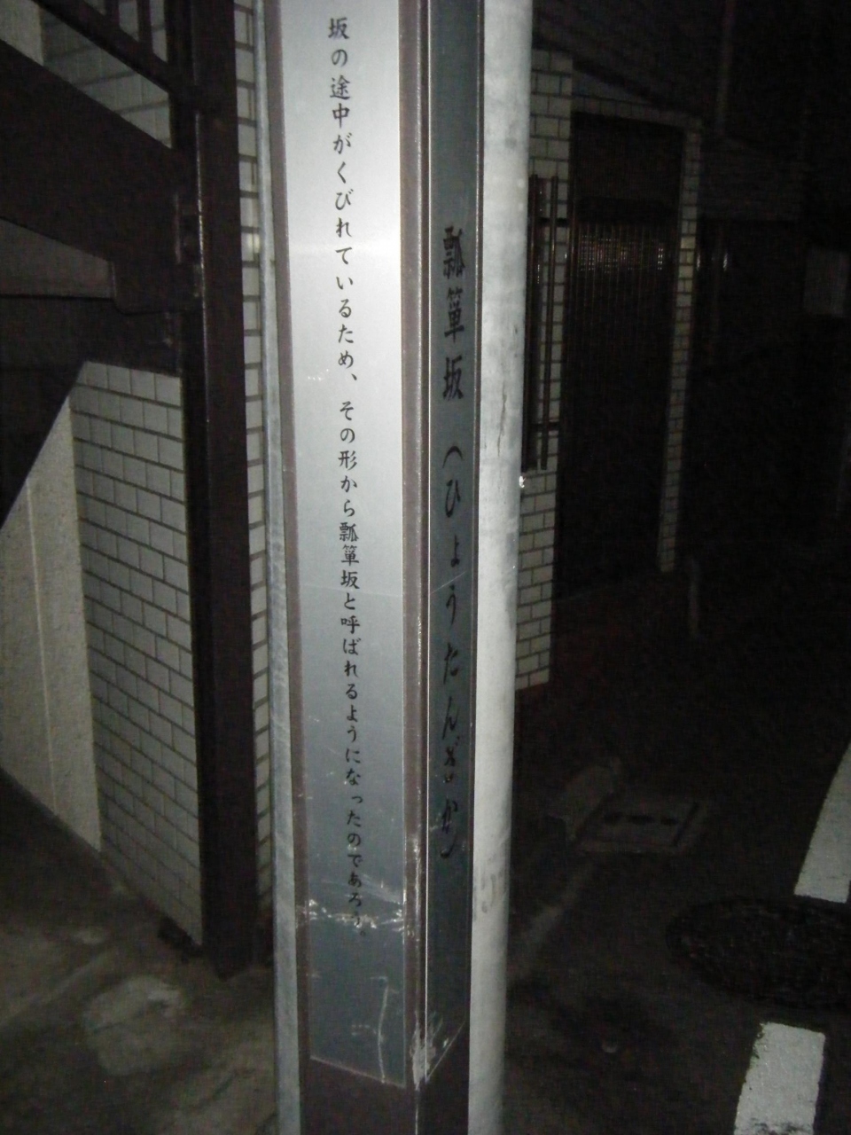 瓢箪坂はJR飯田橋駅から徒歩10分ほど、大久保通りから離れた場所にある坂道で、坂を上りきったところに白銀公園と呼ばれる大きな公園があります。なんとも面白い名前の坂道ですが、坂の途中に設置されていた説明文によりますと、「坂道の途中がくびれていることから瓢箪坂と呼ばれるようになったのであろう」と想像のような事が書かれていました。おそらくはそうなのでしょうか、想像でこういった説明文を載せるというのも面白いですね。
