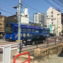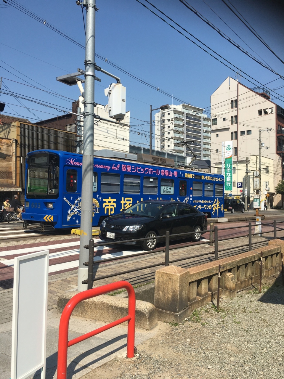 一両編成のカラフルな列車が多く、車体が広告で埋め尽くされたような外観でした。街中を走るので線路と家等が接近しているような感じでした。住吉大社の目の前にはホールがあるので便利でした。意外と混み合っていない列車です。