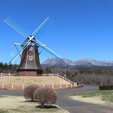 牧場とのことですが、駐車場からは牧場は一番奥にあり、手前にオランダ風という風車が建てられています。花壇に花はありましたが、まだ春先なので、あまり花はなかったです。