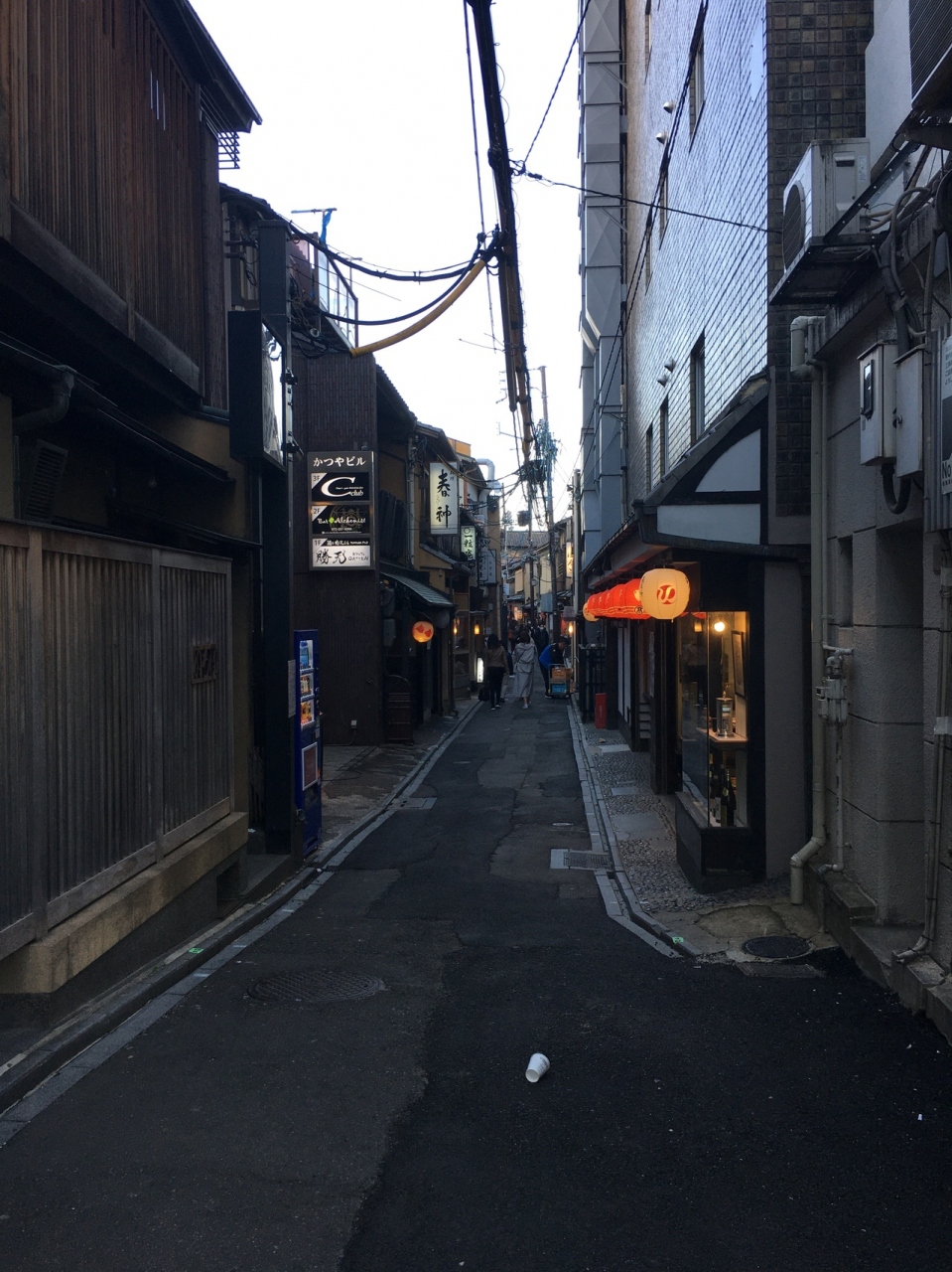 夕暮れときから夜にはかけてのネオンの明かりが幻想的な道です。飲食店が立ち並び小規模の店が多かったです.川沿いの店はテラス席もありました。商店街と言うよりは食べ物屋街でした。日中は閑散としていて、昼の雰囲気は普通でした。