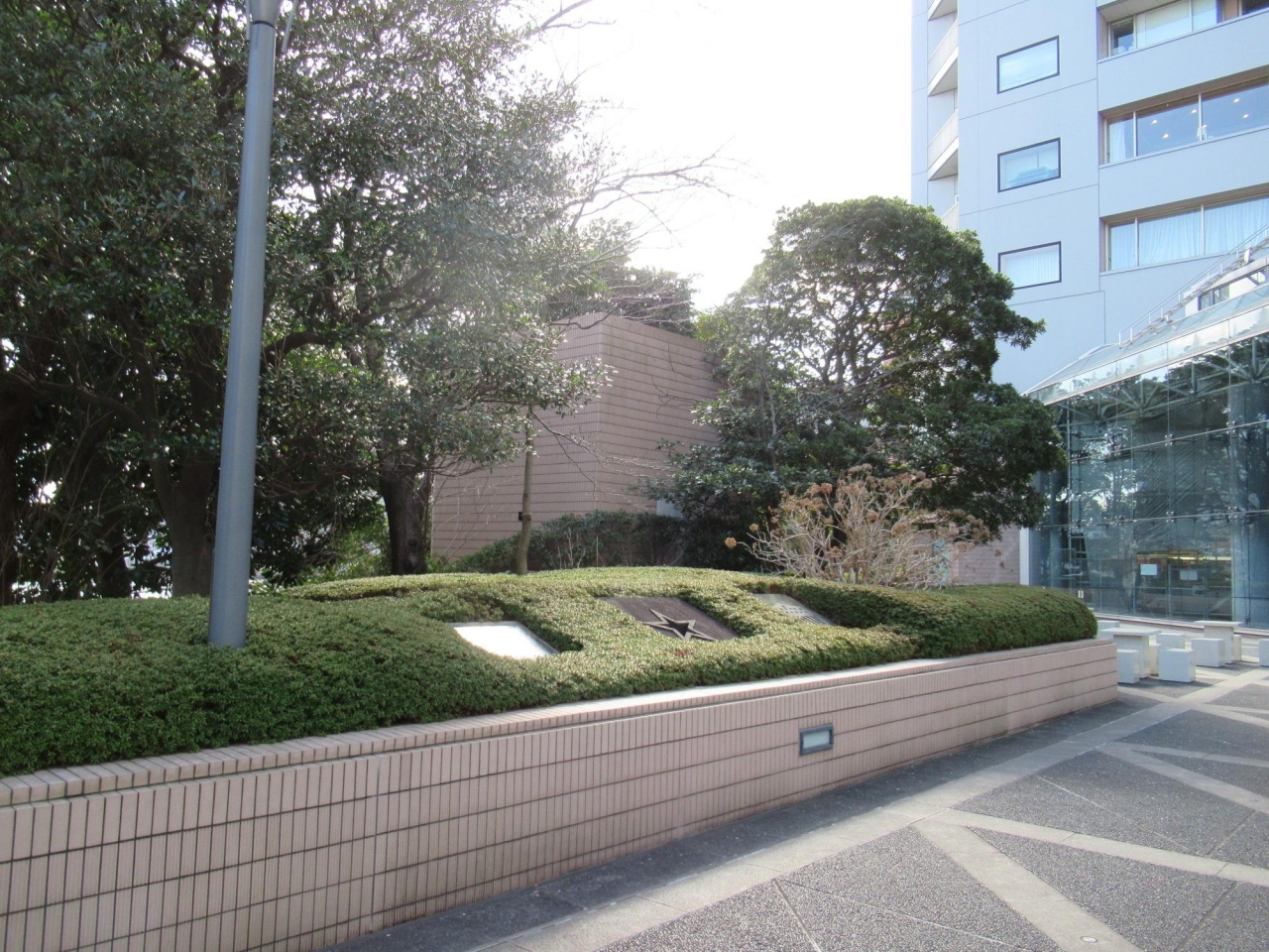 旧病院前とは、ここから二ブロック西側の聖路加国際病院旧館の南側にあるトイスラー記念館の玄関前 (西側) の植え込みなのでここから歩いて4,5分のところです。