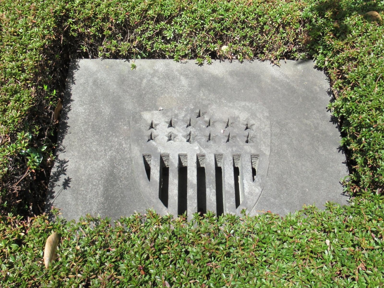 中央区明石町界隈を散策の折、訪ねた聖路加ガーデン2階の大屋根広場の東 (隅田川) 方向の植え込みにあるのに気が付いたのがこの アメリカ公使館跡 の石標で、2個の石標と説明板が並んでいます。